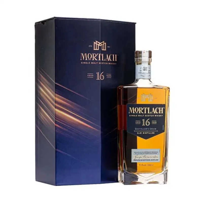 Rượu Mortlach 16 năm là một trong những dòng whisky nổi tiếng của Mortlach Distillery, một nhà máy chưng cất whisky lâu đời ở vùng Speyside, Scotland. Mortlach được biết đến với những chai whisky có hương vị phong phú, mạnh mẽ và đặc trưng, mang lại trải nghiệm độc đáo cho những người yêu thích whisky.