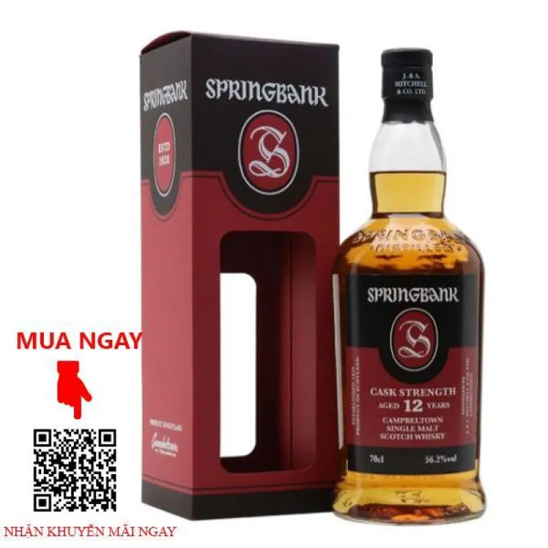 Rượu Springbank 12 năm Cask Strength, được trưởng thành trong sự kết hợp giữa thùng ex-bourbon cũ và rượu ex-sherry trong 12 năm trước khi được đóng chai vào năm 2019, loại mạch nha duy nhất mạnh mẽ từ thùng ủ 57.1% ABV này từ Springbank có hương thơm sảng khoái của lá oregano, hoa oải hương, bánh hạnh nhân, bánh rán mới nướng và mứt cam trên mũi. Vòm miệng cung cấp các nốt hương của bọt biển nướng bơ, kem Chantilly, bột treacle, bánh quy mặn và vỏ cam.